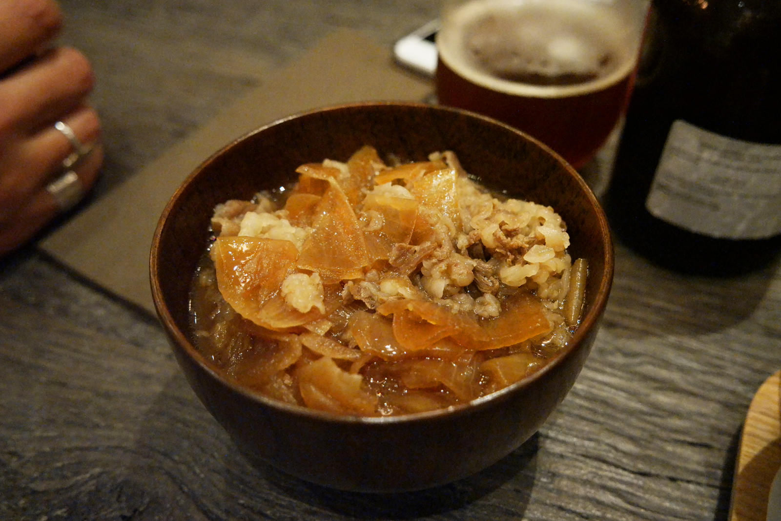 Guydon bol de riz chaud avec bouillon parfumé avec viande Restaurant japonais Oishinoya Paris photo usofparis blogLa composition de bol de riz et de son bouillon parfumé est simple : bœuf pour le classique Gyudon maison ou porc de Dordogne pour le Butadon. Les deux viandes sont passées par les mains expertes d’Hugo Desnoyer, autant dire que l’on vient en terrain conquis.