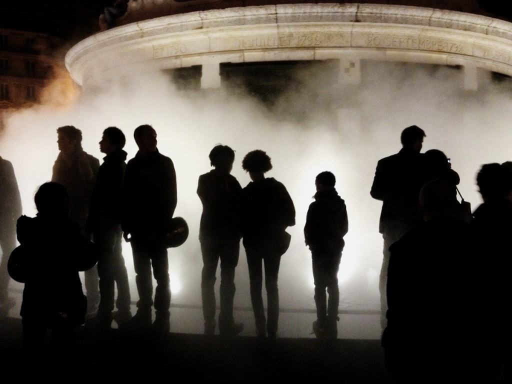Une expérience visuelle sur la Place de la République qui a été l’occasion de belles rencontres et d’un flot d’hommes, de femmes, d’enfants réunis tous et toutes dans un brouillard spectaculaire.