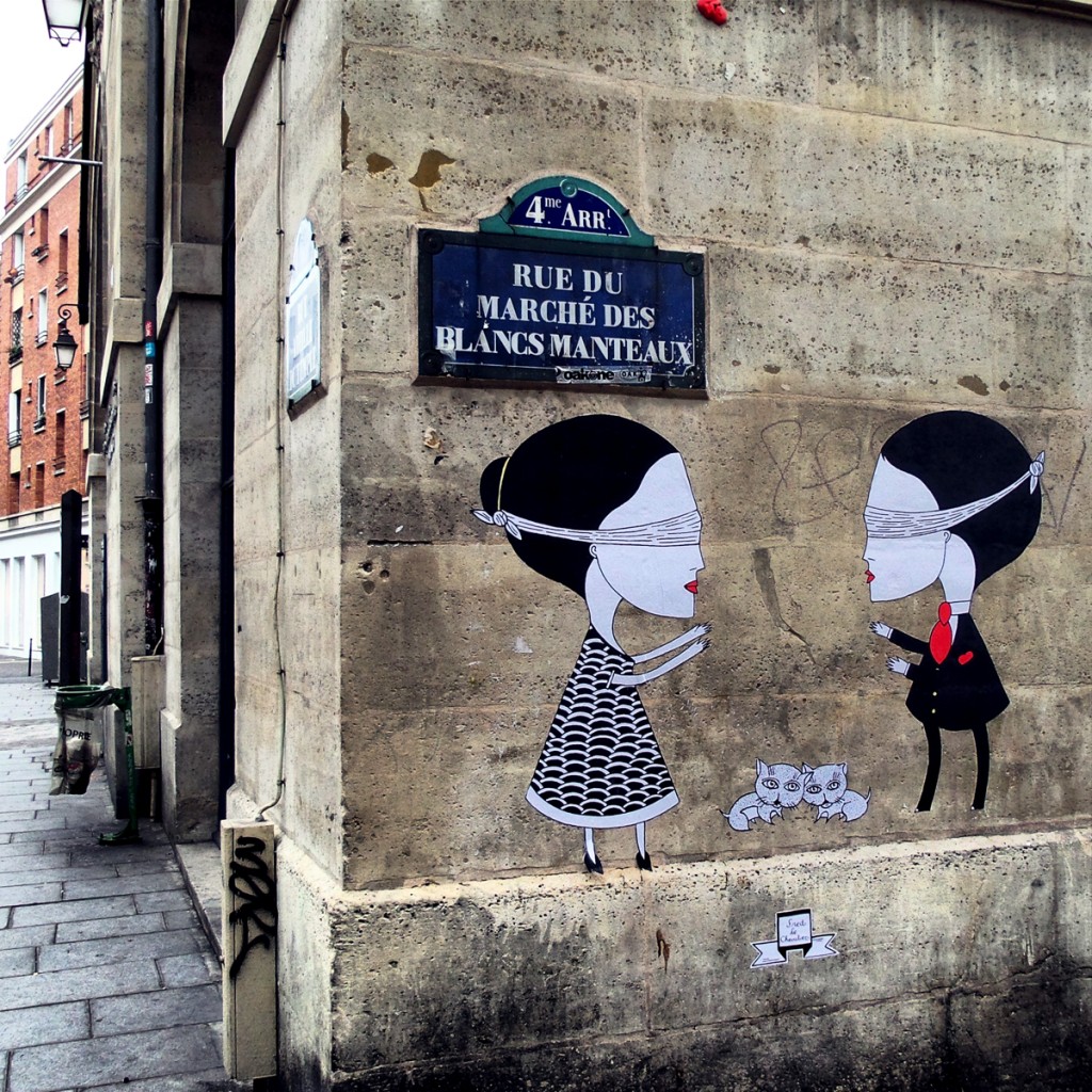 Et cette fois est la bonne pour rendre hommage à la poésie de papier du street-artiste Fred Le Chevalier qui colle ses personnages dans les rues de Paris. Parce qu’en amour, il est de bon ton de dire que 1+1 = 1.