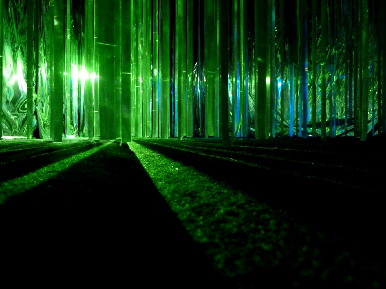 Avec de simples éléments comme une moquette, des lamelles en plastique et un projecteur, le visiteur pénètre une scène de contemplation pure.