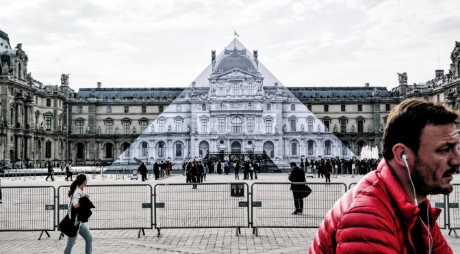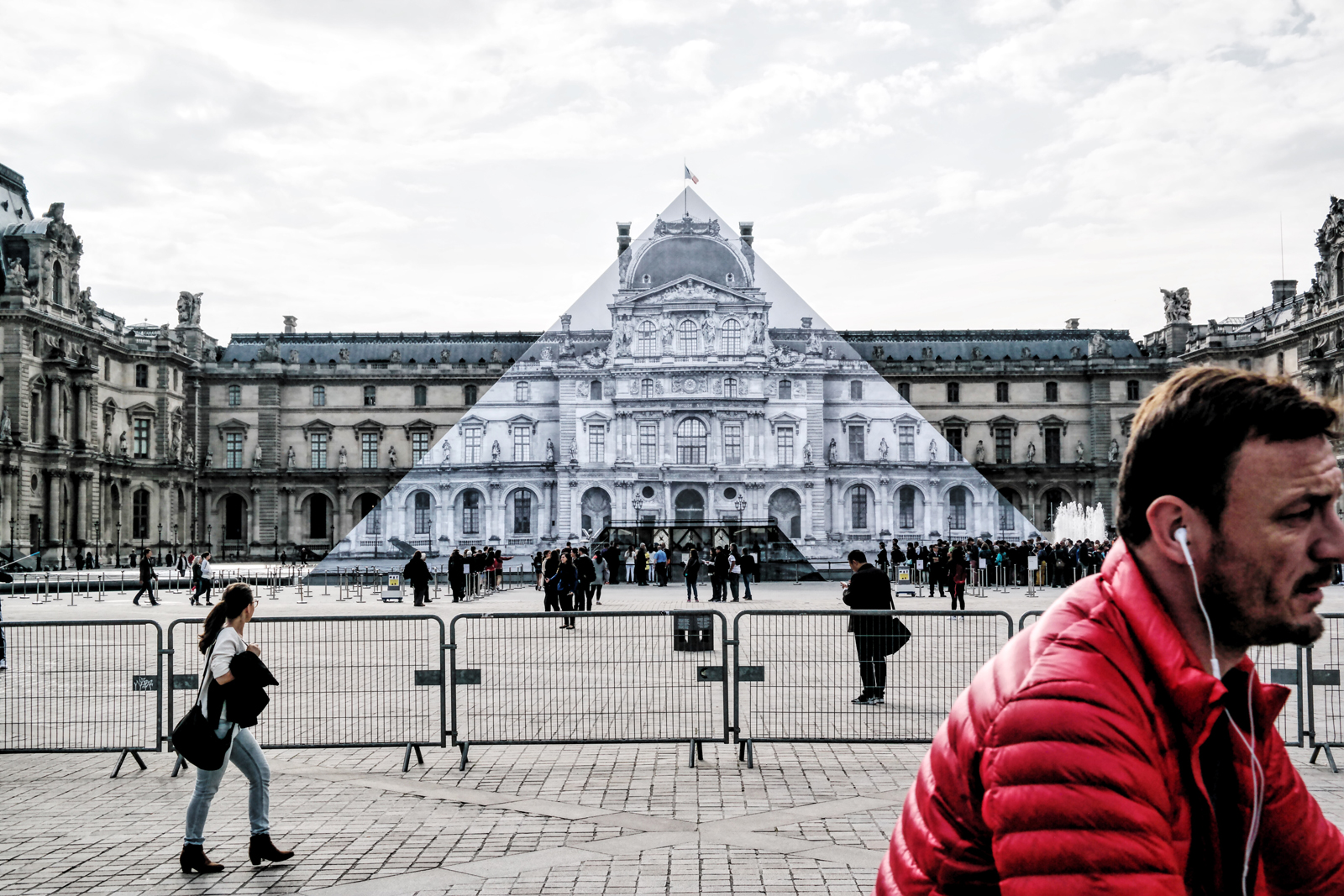 L’équilibre parfait a été de pouvoir aligner au plus juste notre objectif pour saisir le jeu d’illusion de l’installation spectaculaire de l’artiste JR sur la pyramide du Musée du Louvre. On ne s’en lasse pas.