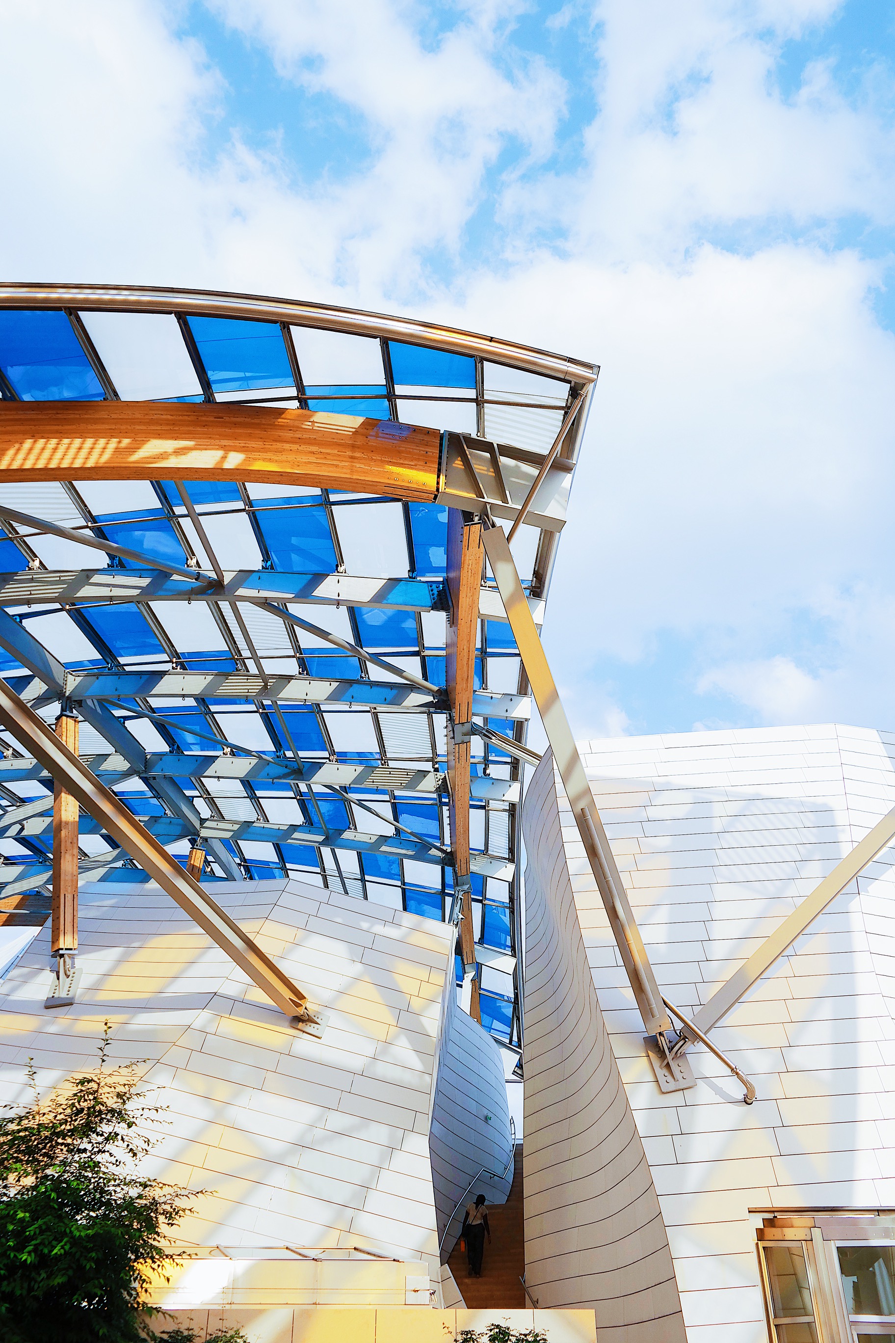Impossible de ne pas penser à la spectaculaire verrière de la Fondation Vuitton et à sa transparence. L’artiste Buren a fait équipe avec le soleil pour ce jeu d’ombres, lumières et couleurs à travers le verre architectural.