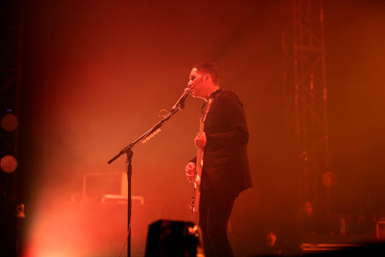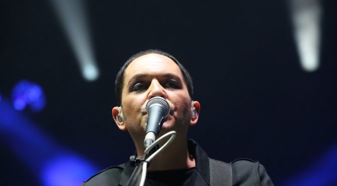 Et les idoles vieillissent. La frange droite et la coupe courte ne va finalement pas si bien à Brian Molko quand il débute sur l’excellent Pure Morning, parfaite intro pour une entrée de scène. C’est finalement son partenaire qui s’en tire le mieux, Stefan Olsdal se bonifie avec le temps. Tempes rasées et grisonnantes, queue de cheval, veste noire, bretelles qui pendent à l’arrière du pantalon, il faut le voir jouer de sa basse, tendre les bras pour porter son instrument.