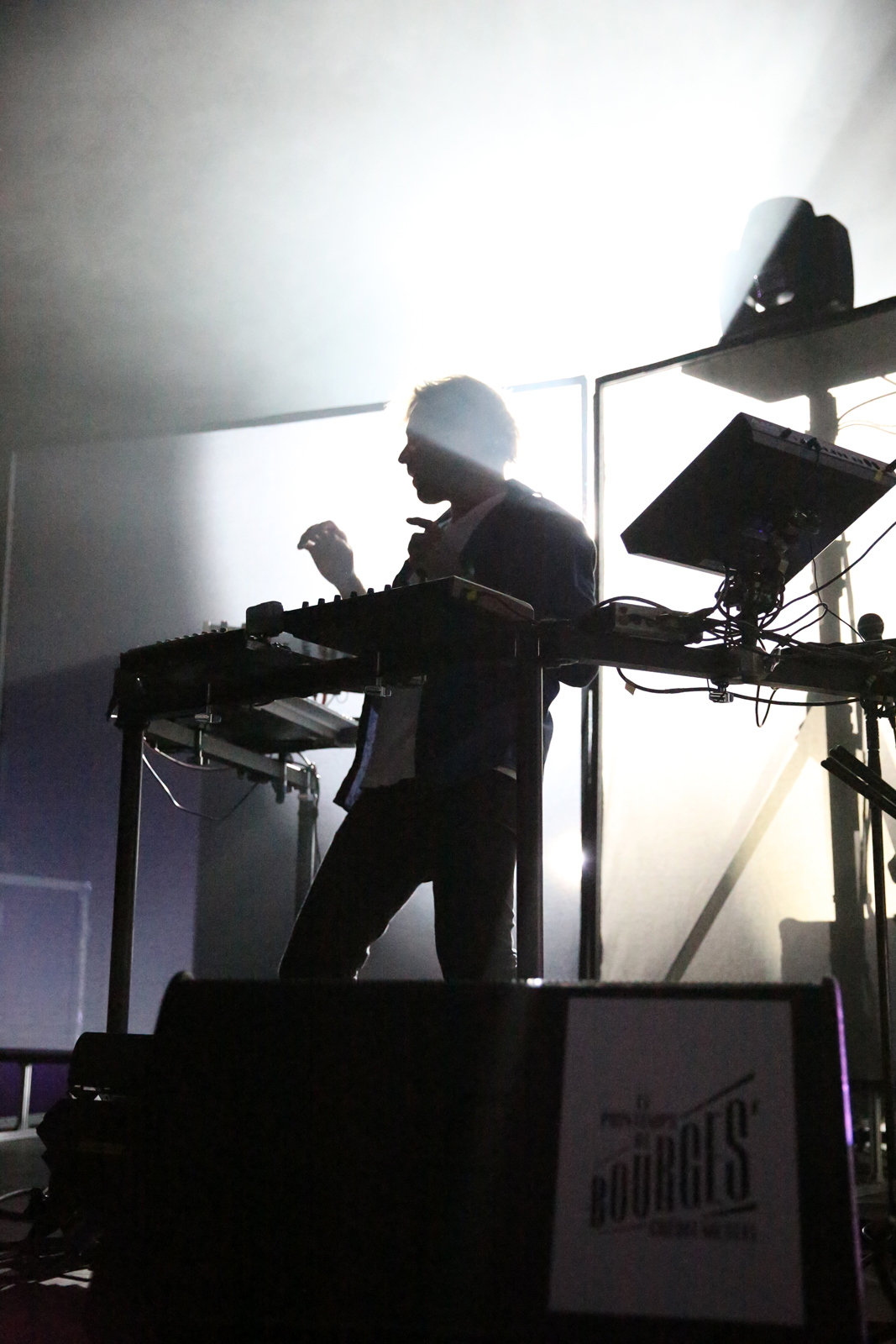 On ne l’attendait pas particulièrement, French 79. Sa scénographie est très simple. Trois petits écrans blancs derrière lui, des vidéoproj, 3 consoles. Pendant qu’on shoote les 3 premiers titres, une jeune crie : “Il est Français !” comme s’il y avait eu un doute.