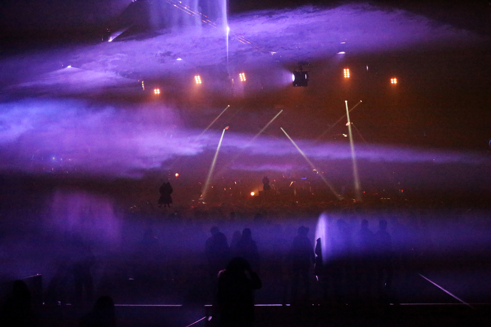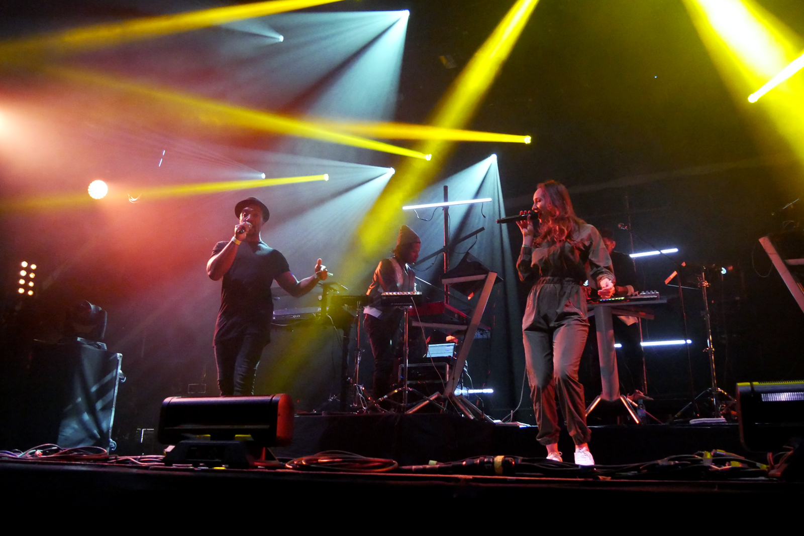 Durant tout le show, ils enchaîneront les titres de Jabberwocky, tantôt en solo, tantôt en duo. Jeux de lumières léchées, percus bien appuyées et basses profondes : le groupe embarque avec lui le public qui afflue doucement vers la scène du W.