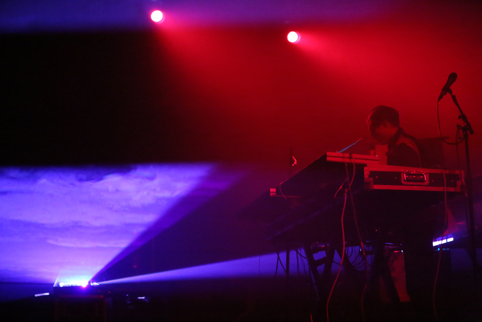 La lumière baisse, la tonalité sera rouge pendant une bonne partie du live. “Le concert a débuté… C’est le Printemps !” nous lance le facétieux compositeur. Jacques est un peu le Orlan de l’électro. Son choix capillaire peut dérouter, mais ça en fait toute sa différence.