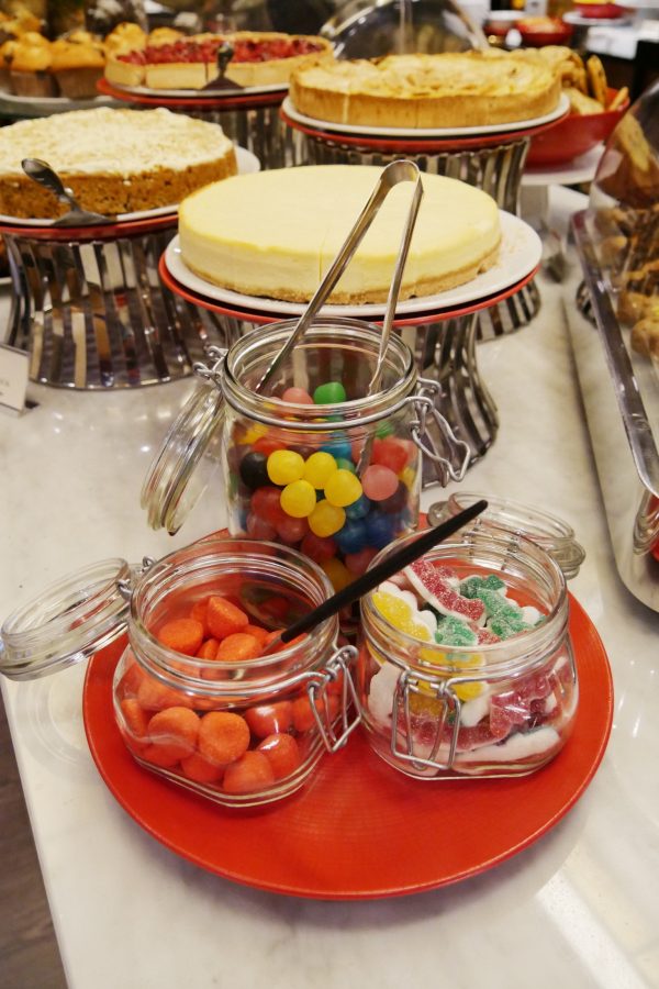 On s’attable à deux pas du buffet. Une place de choix qui permet de scruter les goûts des autres adeptes de plaisirs salés sucrés et de repérer les plus gourmands.