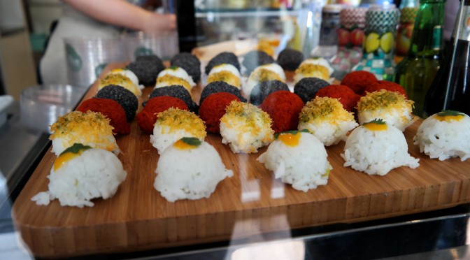 – les hémisphères ! Des mini-boules de riz colorées et aux différents parfums. Les combiner entre elles permet de faire plein de découvertes en un seul plat. Malin !
