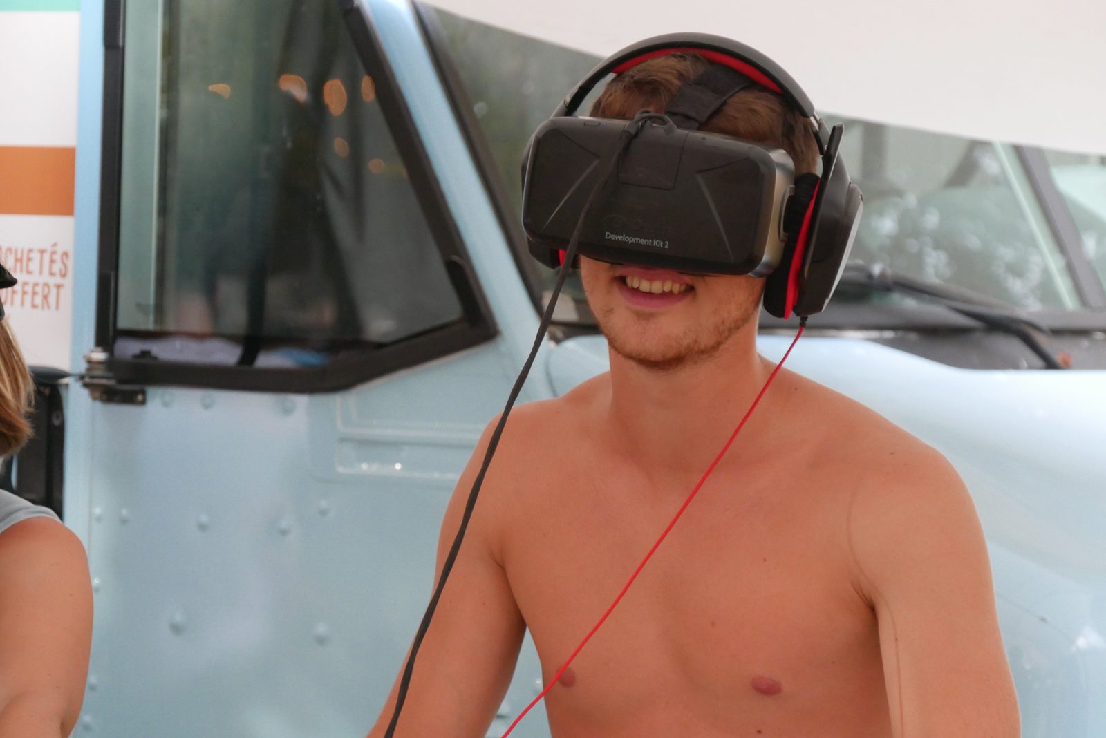 On passage, on s’est fait un slalom à ski en 360° avec le casque Oculus. Belle descente avec une vraie sensation de vitesse grâce au ventilo face à nous. Dernière tendance donc : faire du ski en tongs !