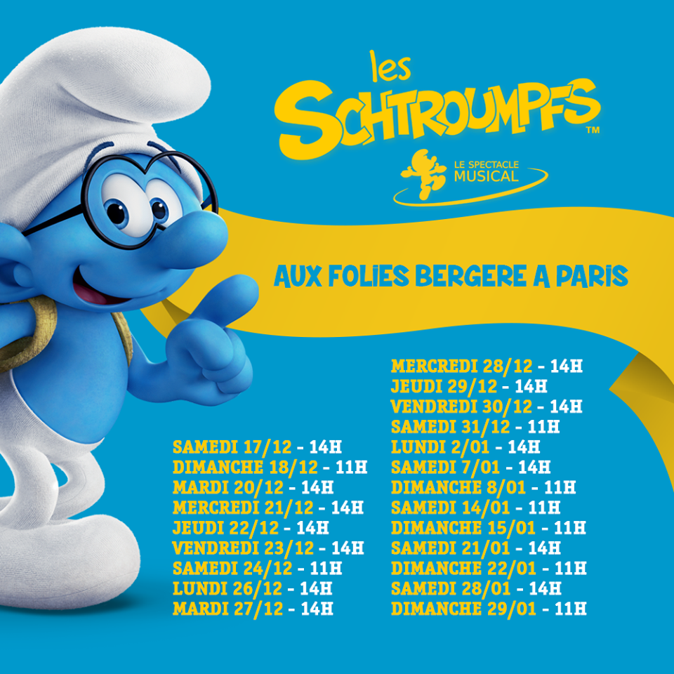 Les Schtroumpfs, le spectacle musical joyeux pour petits et grands à l’affiche des Folies Bergère. Reprise dès le 17 décembre et en tournée en France en 2017.