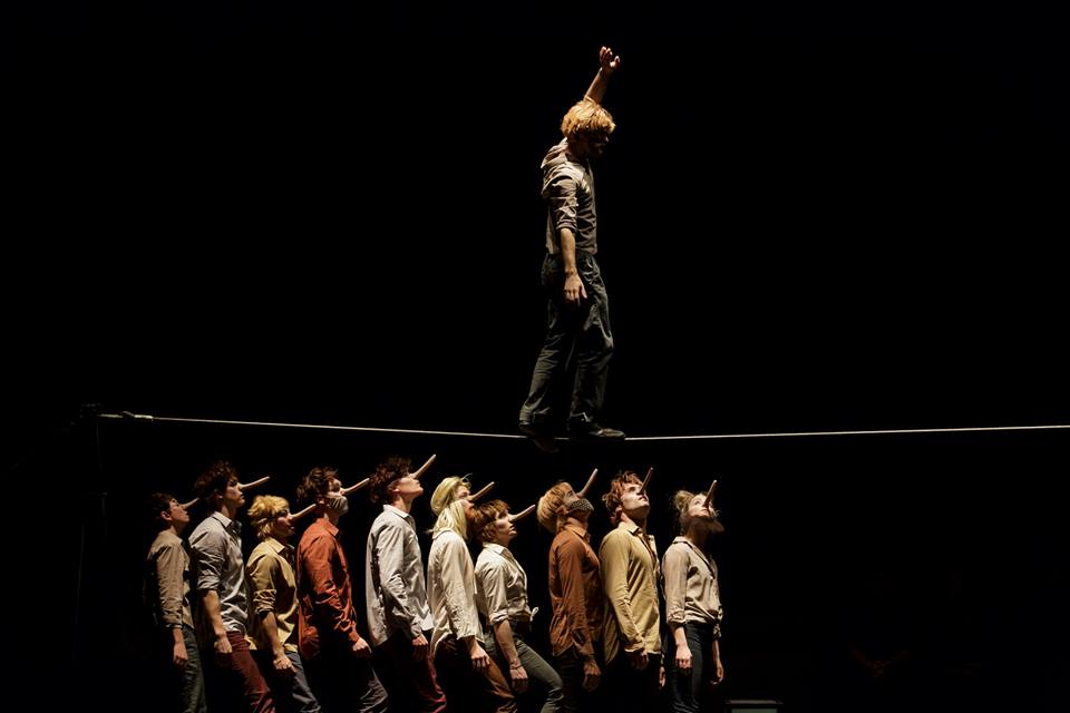 Les numéros de cirque sont parsemés tout au long de la soirée. Ils semblent plus courts que par le passé. Ce qui ne gâche en rien la prouesse physique, comme le premier numéro d’équilibre sur fil où l’artiste n’est pas seul en scène mais accompagné de ses camarades partenaires de jeu. C’est aussi le cas lors d’une montée à 3 partenaires sur un cordage tendu et tenu par les 8 autres ayant gardé les pieds sur la piste.