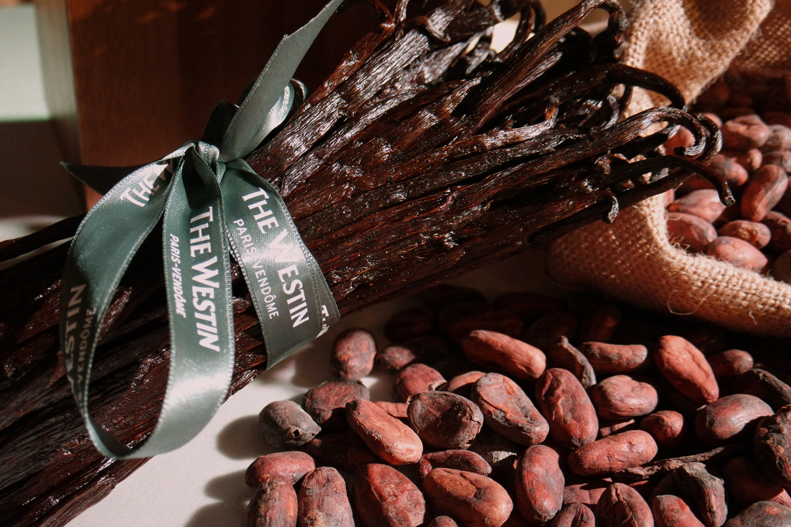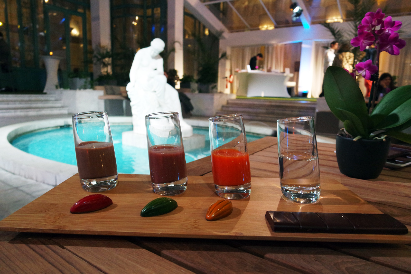 Trois couleurs de fève pour trois déclinaisons : praliné amandes et goji, ganache piment chile habanero et ganache thé vert au jasmin. A déguster face à la fontaine dans la cour intérieure de l’hôtel. La circulation de la rue de Rivoli n’ayant plus aucune prise sur nous.