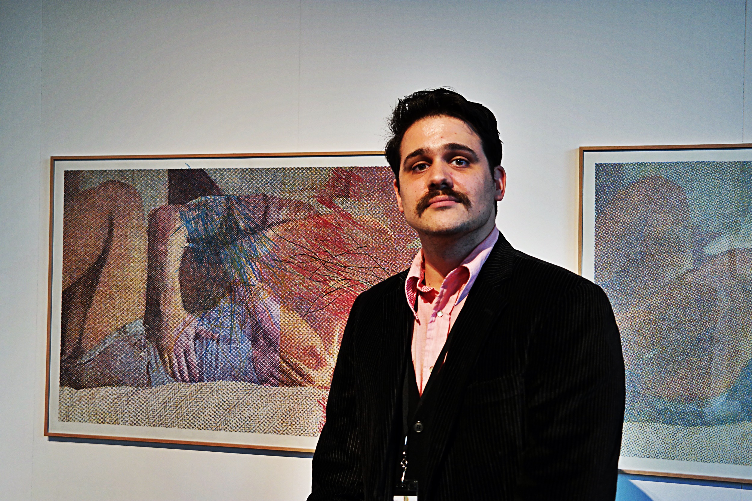 On enchaîne avec Clément Balcon, sérigraphe de son état, avant d’être artiste. A y regarder de plus près ces baisers sont trompeurs. Ils ne sont pas le fruit d’une impression mais d’un “travail pénible”, comme le décrit l’intéressé, de quadrichromie réalisée aux crayons de couleur. Impressionnant et cocasse quand on sait que ce baiser est extrait d’un film porno.