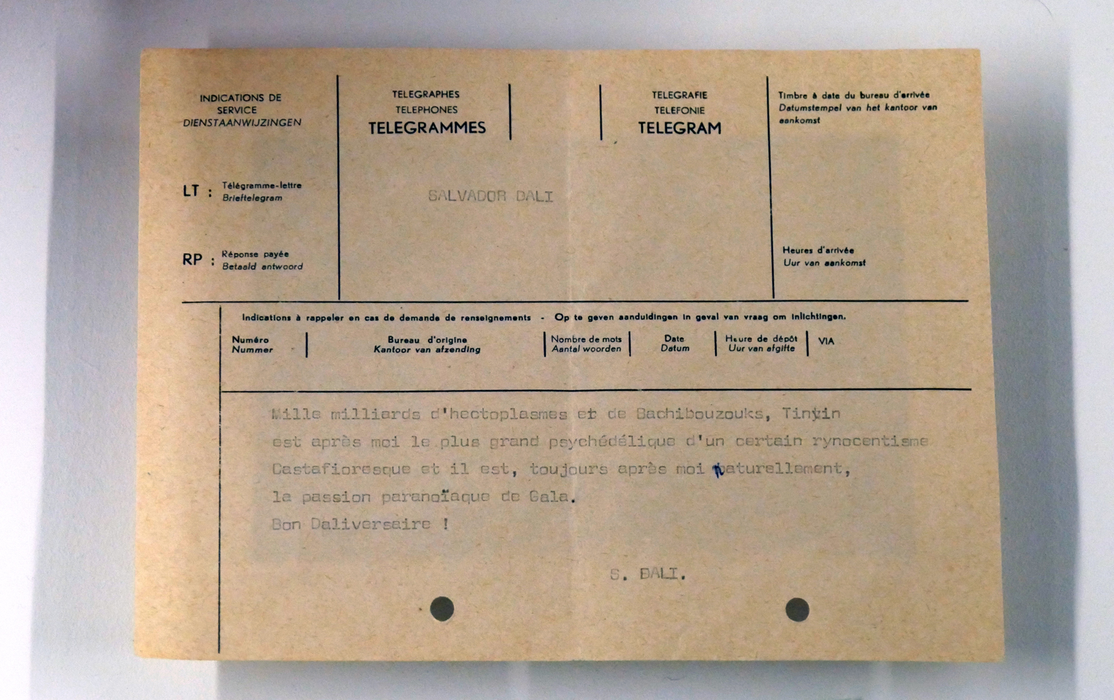 Plus rare aussi l’admiration de Salvador Dali. En témoigne ce télégramme psyché non daté.