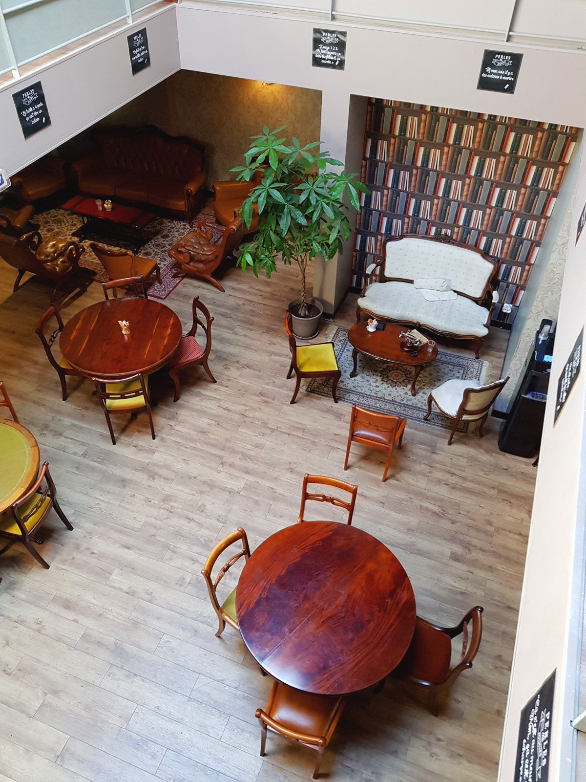 A l’étage, les 60 m²de bureaux ont été démolis pour faire place net à cet hôtel du XIXe siècle. Soit une surface 3 fois plus grande que pour les autres histoires. La majeure partie du décor a été conçue par un décorateur de cinéma.