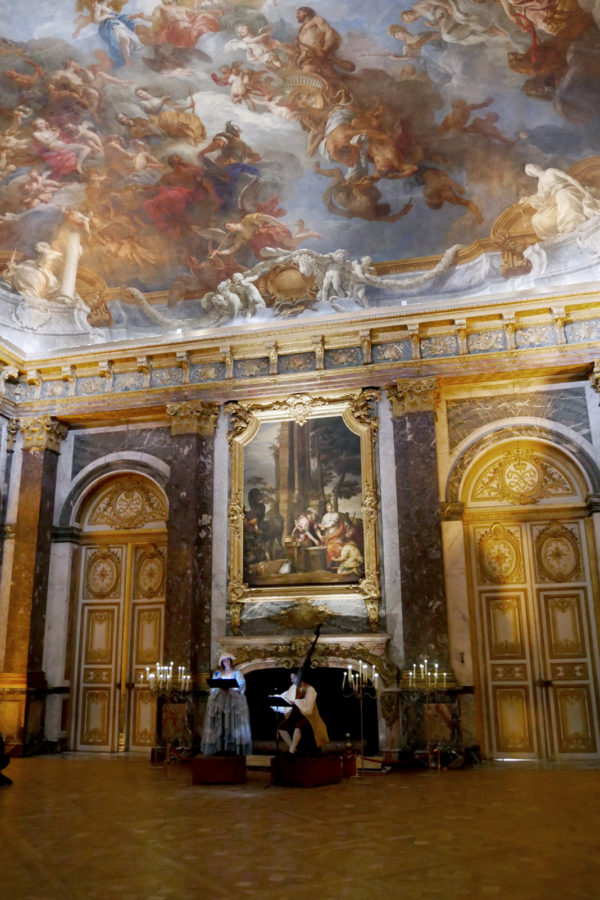 Accueillis par des aboyeurs royaux, les portes du Château de Versailles version nocturne s’ouvrent à nous. Les costumes sont chatoyants et gracieusement ornés.