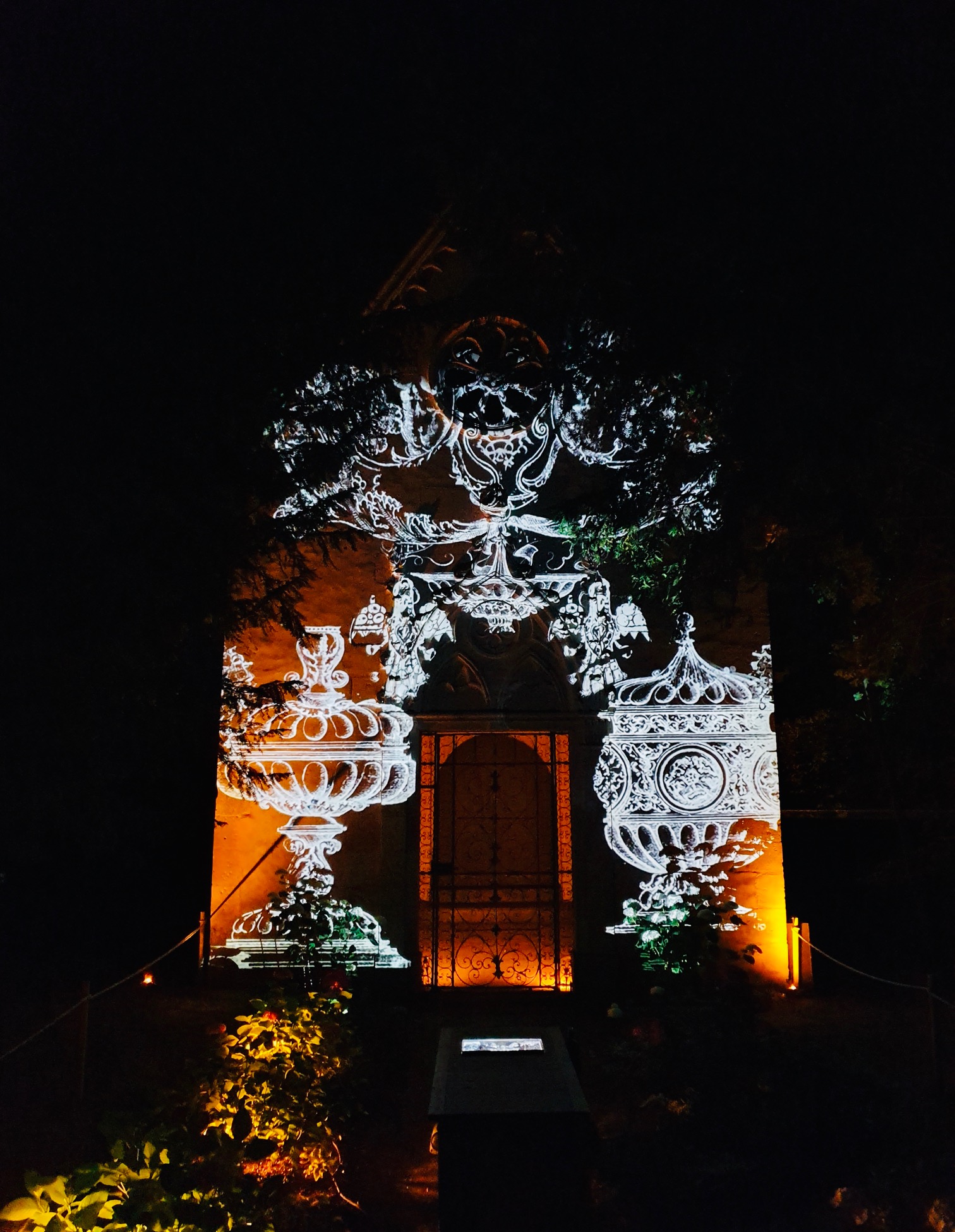 La nuit venue, il est ainsi possible de se promener dans le parc paysager, un havre romantique conçu au 19e siècle. Là, on redécouvre le décor, différent forcément, avec des éléments projetés, des animaux à contempler, des palettes de couleurs à apprécier. Tout peut s’animer, arbres, cours d’eau ou encore chapelles.