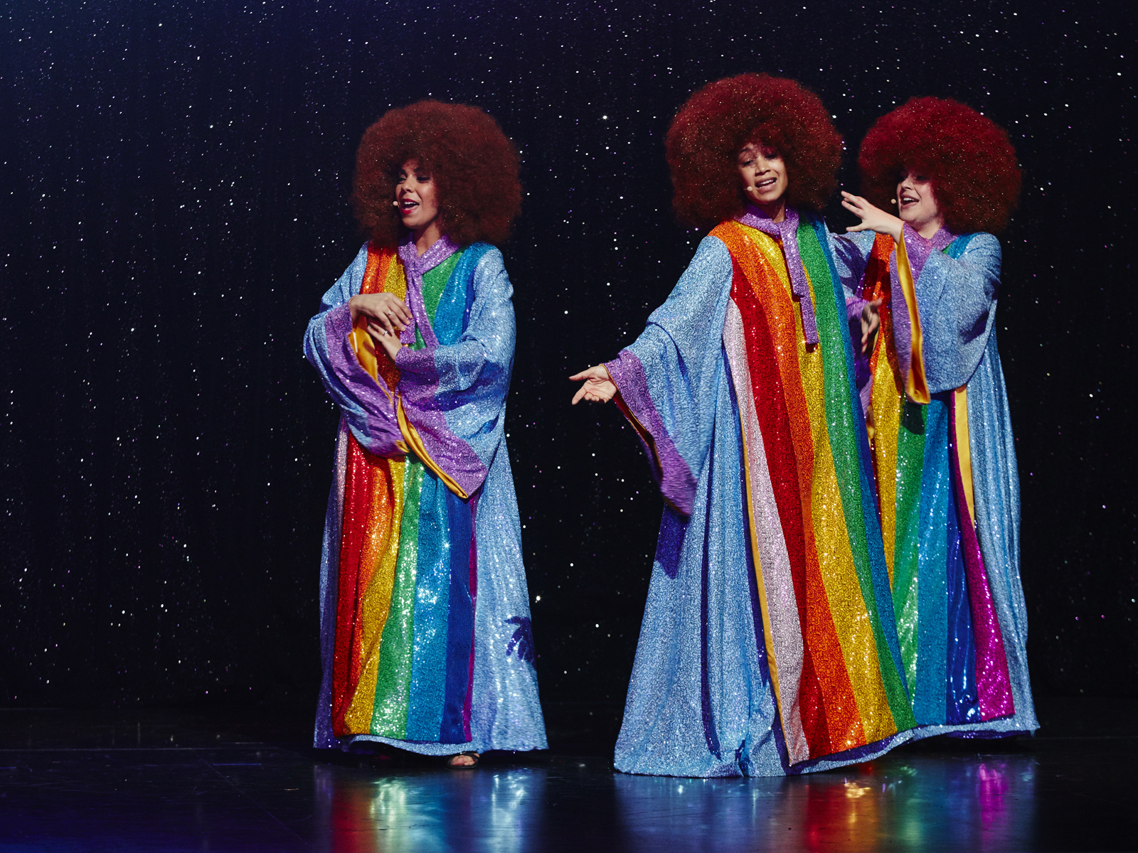 Les trois géniales chanteuses qui viennent en soutien aux protagonistes ont le droit de chanter dans les airs comme des anges et sont magnifiés des costumes endiablés et volumineux.