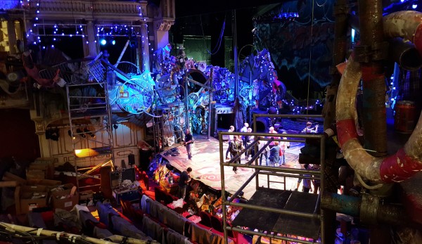 Même si le public retrouvera les éléments principaux sur scène, comme la voiture et l’engrenage à l’échelle des yeux de chats, les éléments de décors qui entourent le plateau sont uniques pour cette production française. Les décorateurs se prennent un malin plaisir à dégoter de nouveaux accessoires, à les façonner et les vieillir pour leur donner une patine spécifique et finalement les intégrer à la scène pour créer un univers unique.