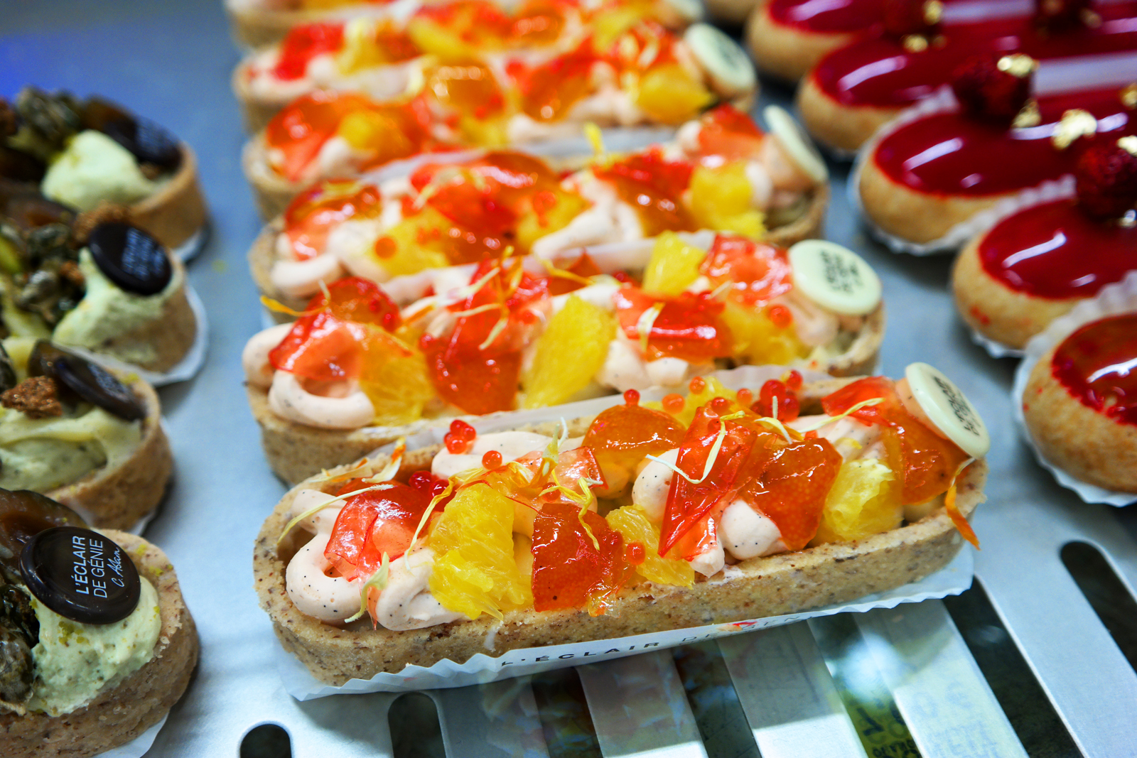 Un petit accro dans notre programme sucré, la proposition à contre-courant et tout aussi jouissive de la maison Dalloyau avec son trio de religieuses salées : avocat-crabe, piquillos-tomate, saumon-aneth. Nous avons testé la version mini et jaune : saumon aneth, une petite tuerie en modèle réduit.