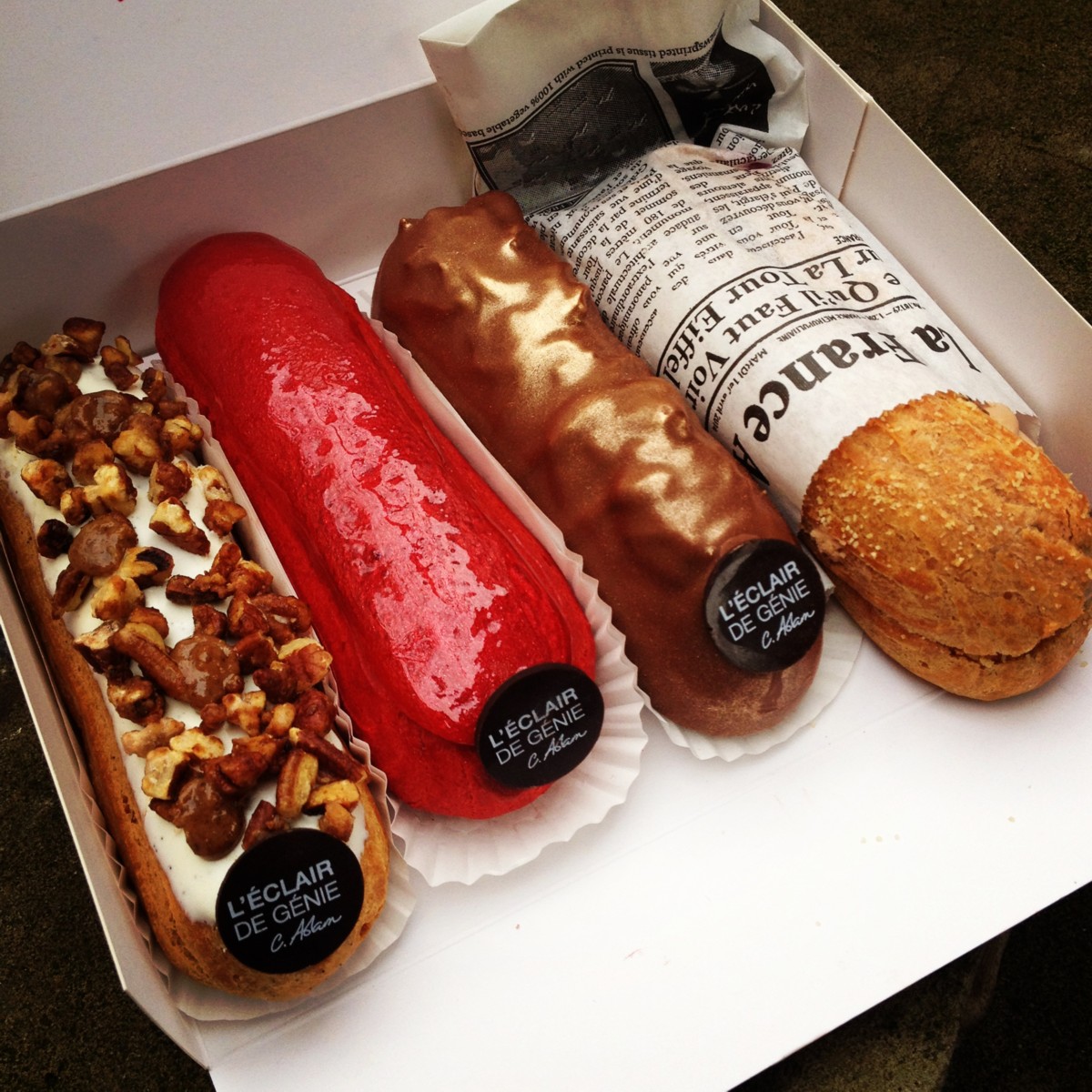 dans les 6 boutiques parisiennes de L’Eclair de Génie :