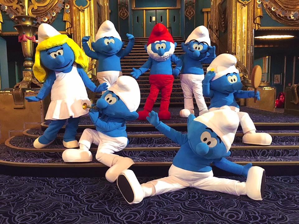 Le spectacle des Schtroumpfs nous plonge immédiatement dans l’univers des petites créatures bleues créées en 1958 par Peyo, auteur belge francophone de bande dessinée.