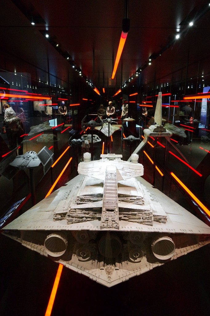 Mais pour les fans de la première heure qui n’ont jamais eu l’occasion de découvrir costumes, maquettes de vaisseaux spatiaux, figurines, story-board, ou dessins de pré-production , cette exposition regorge de pépites, fétiches et véritables oeuvres. Un vrai bonheur pour les yeux.