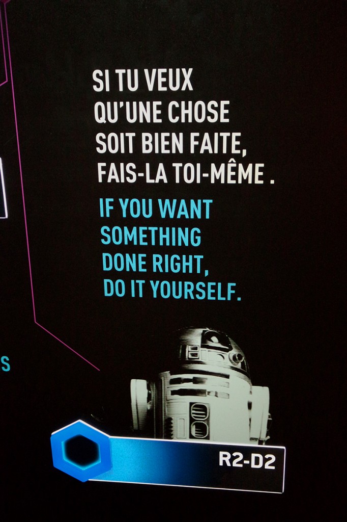 Ce parcours interactif, plus ou moins organisé autour de l’histoire de Anakin, Luke, Yan et Leia débute par – il faut bien dire – le controversé épisode I de la double trilogie de Georges Lucas. R2D2, Bobba Fett et autres stromtroopers vous accueillent pour vous guider dans se parcours sur la voie de la Force.