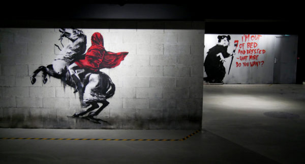 Beaucoup de ces toiles ont d’abord été graffées sur des murs par le cultissime Banksy.