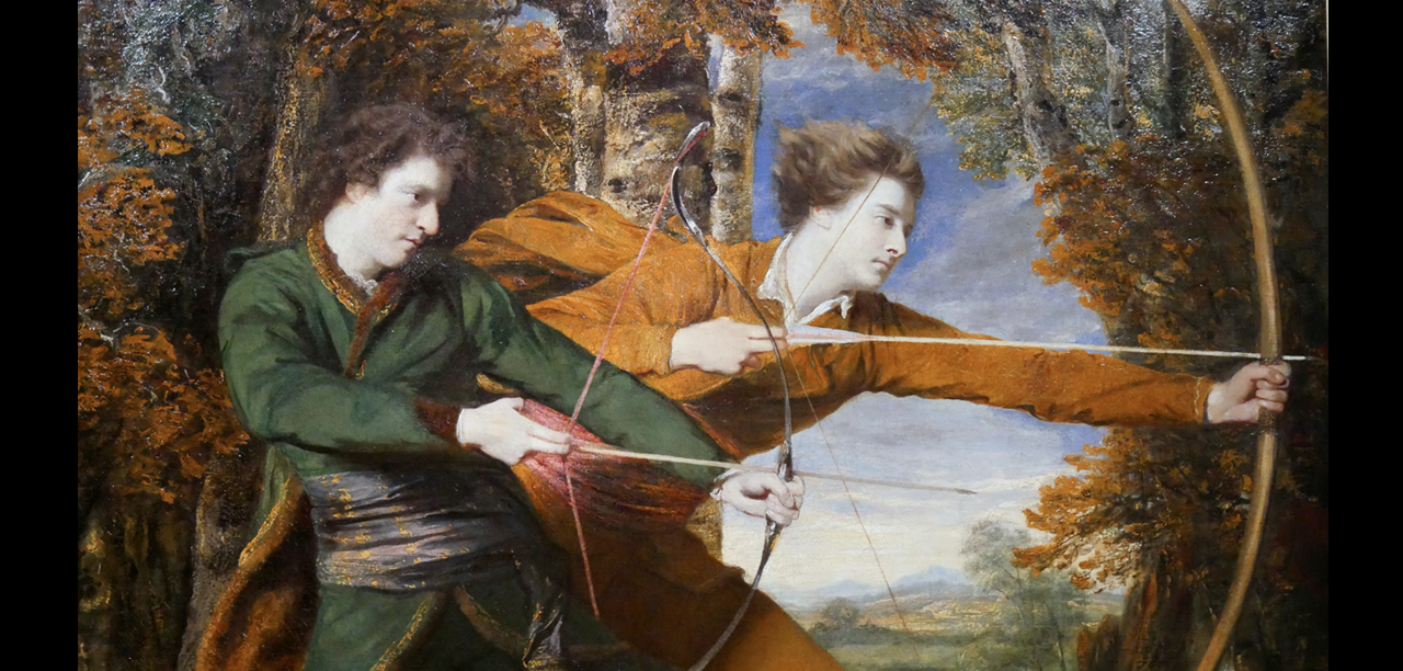 Joshua Reynols a saisi le Colonel Acland et Lord Sydney en pleine action. Mais il ne faut pas nous tromper. Ces deux nobles messieurs sont déguisés en chasseurs.
