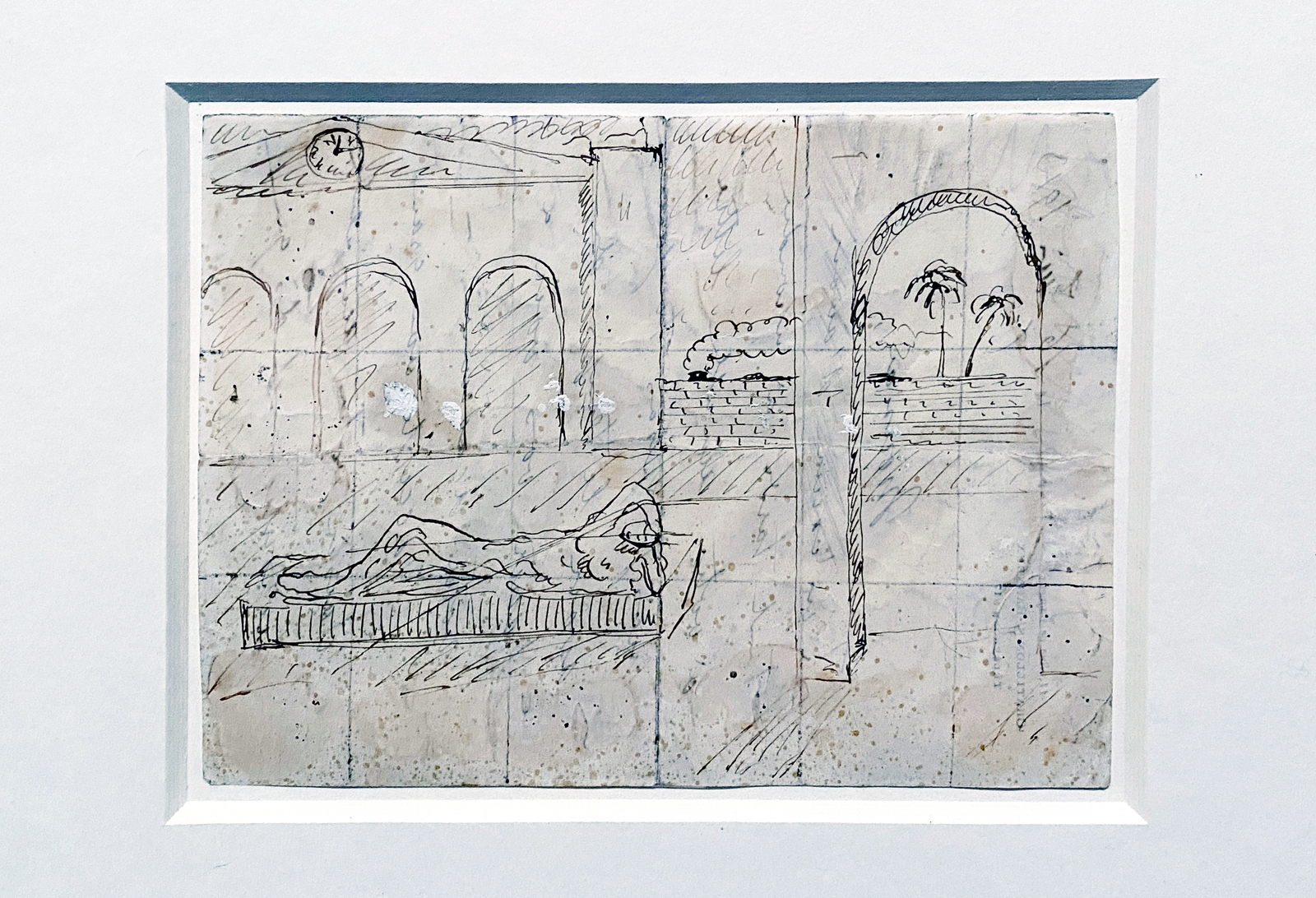 La découverte de dessins au crayon montre un contraste fort entre le travail préparatoire plein de vie et de mouvements et la toile plus austère et figée.