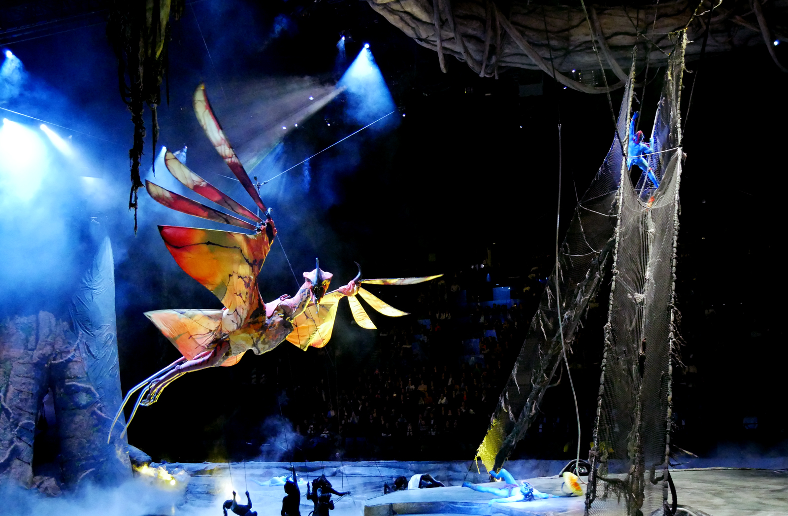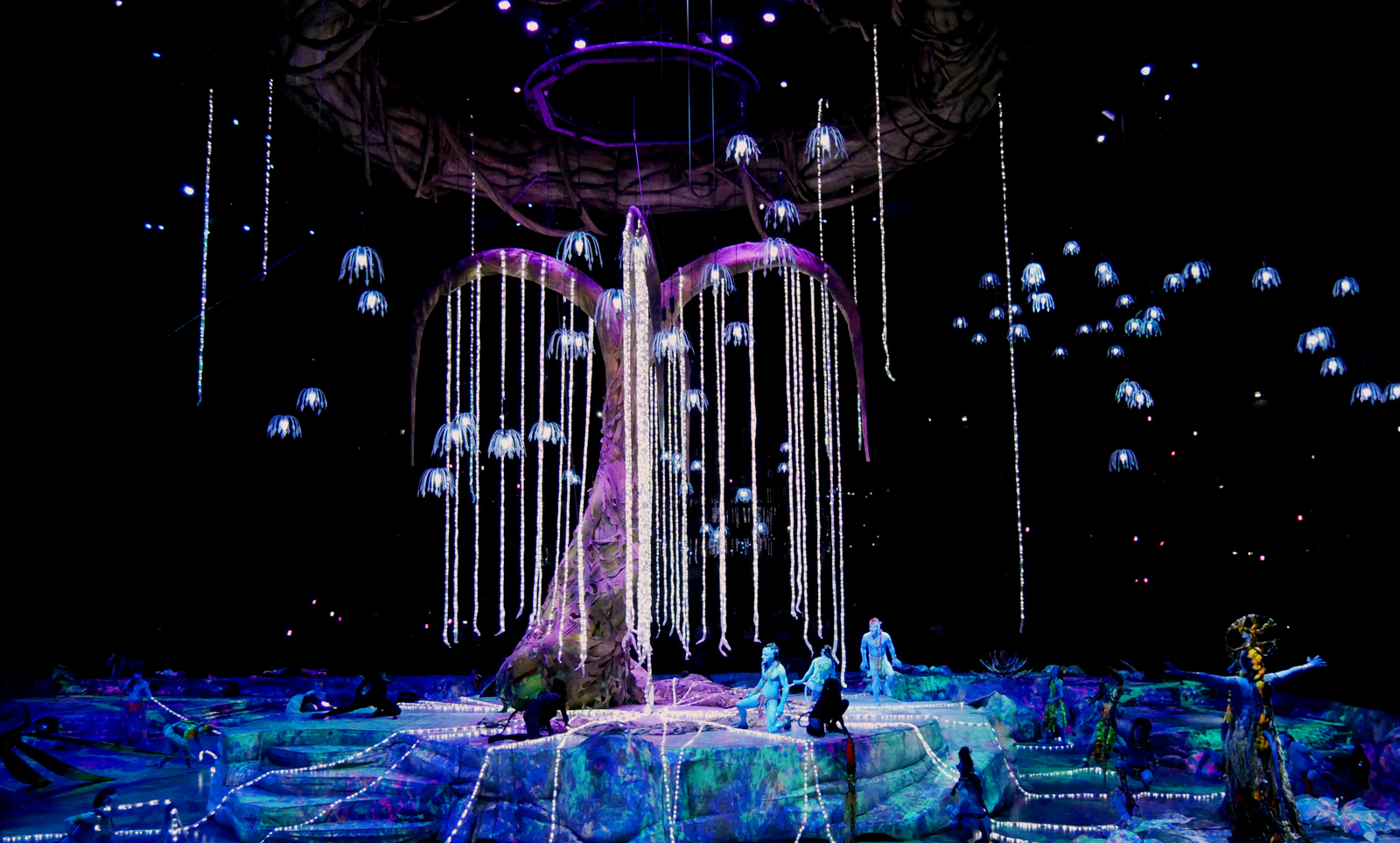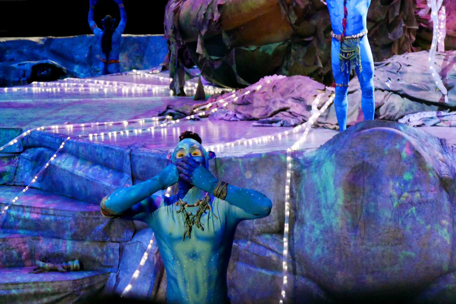 Cette fois, ce ne sont pas les numéros qui donnent leur sens au spectacle mais le récit. On se trouve téléportés 3 000 ans avant Avatar pour suivre l’aventure de deux garçons Na’vis, Ralu et Entu, bientôt rejoints par la jeune fille Tsyal, lancés dans une course pour sauver leur arbre de vie.