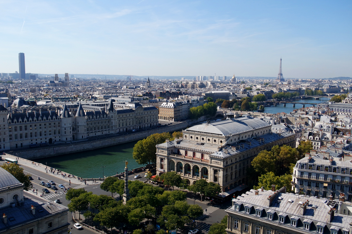 La-place-et-le-Théâtre-du-Châtelet-la-Conciergerie-Tour-Eiffel-tower-seine-vue-depuis-la-Tour-Saint-Jacques-rooftop-nx-mini-samsung-photo-by-United-States-of-Paris-blog