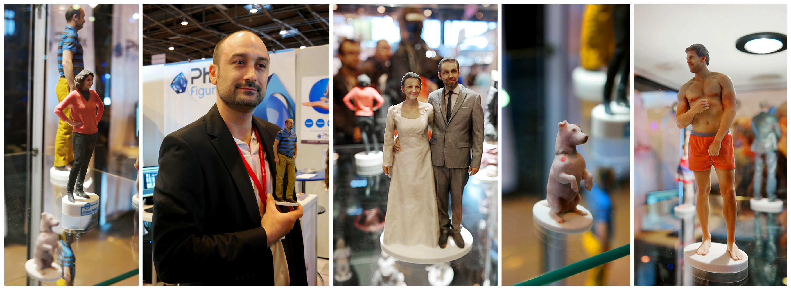 Foire de Paris 2015 porte de versailles exposants photo figurine impression 3d statuette technologie coup de coeur découverte icicestfoiredeparis photo by blog United States of parisAprès la pose devant 64 appareils photos (soit 1 milliard de pixels tout de même), il faudra compter trois jours de travail pour détourer à la main (la technologie est moins précise que l’oeil humain) le modèle et dix heures pour l’imprimer. Le rendu est surprenant de réalisme, un vrai mini-moi. Un bonne idée pour un anniversaire ou votre mariage : remplacer la banale figurine en plastique sur la pièce montée par les doubles des deux mariés. C’est l’innovation du moment !