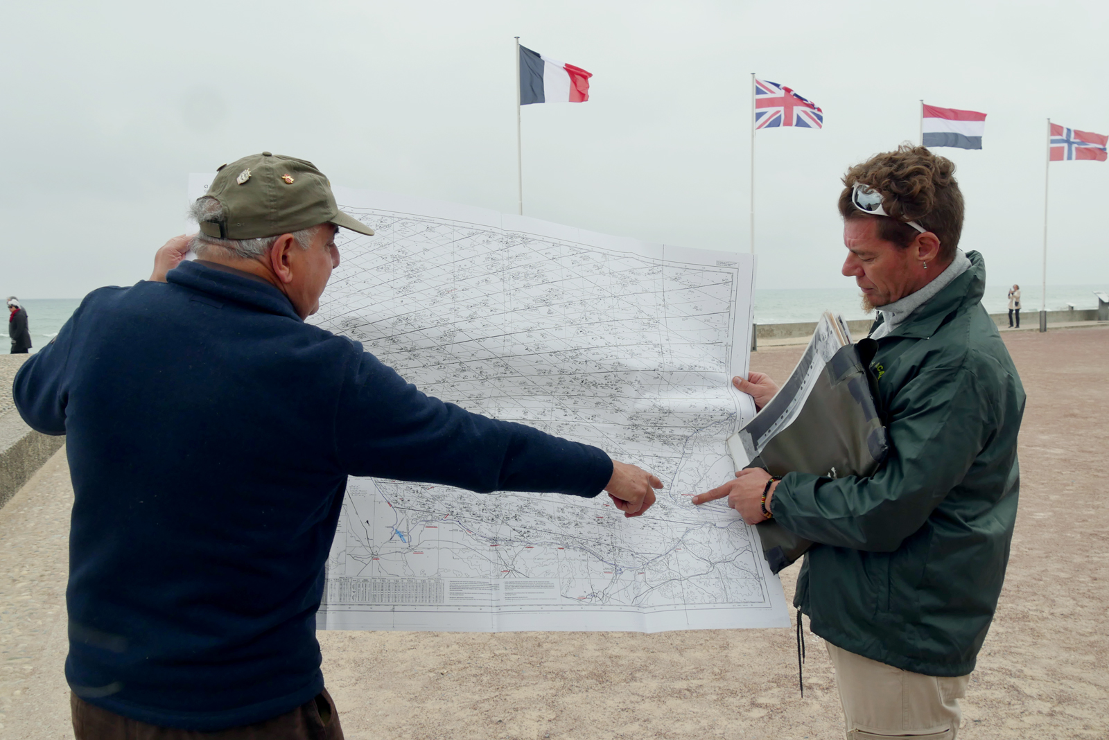 Le plus impressionnant, c’est cette carte de la Baie de Seine qu’il déroule devant nous.