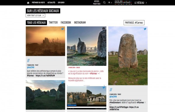 Centre des monuments nationaux CMN site web billetterie visite carnac balade instagram twitter vine facebook youtube