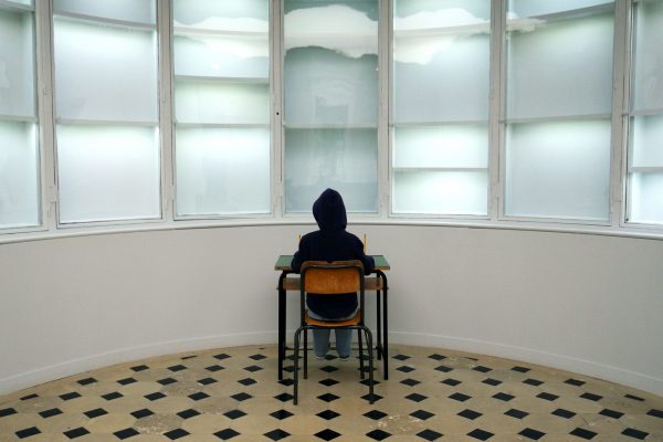 Un éclairage tout autre car Cattelan a toujours eu un rapport difficile avec l’école. Celui-ci est évoqué avec Charlie Don’t Surf, dans la salle suivante.