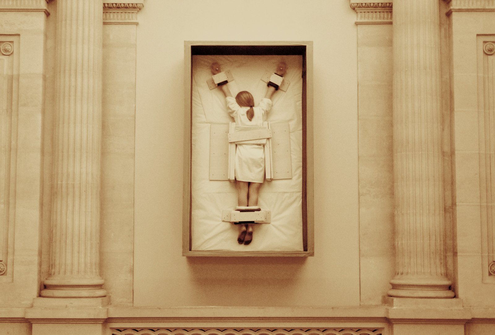 On peut voir dans cette femme crucifiée un hommage à Francesca Woodman. Cette photographe, établie à New York, avait l’habitude de se mettre en scène, tout comme Maurizio Cattelan. Ce dernier reprend ici une photo mythique de la photographe.