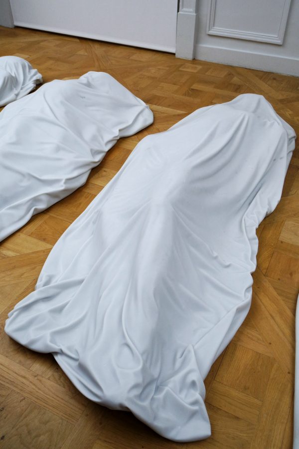 Sauf qu’il est rare de voir des gisants recouverts d’un voile. Est-ce un renvoi vers le passé de Cattelan qui a travaillé dans une morgue ?