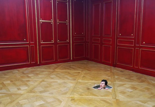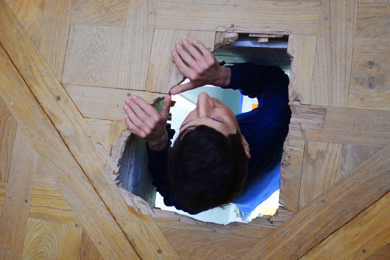 Ici, il transperce réellement le sol du musée. Un collaborateur de la Monnaie de Paris a vraiment le double de Cattelan dans son bureau !