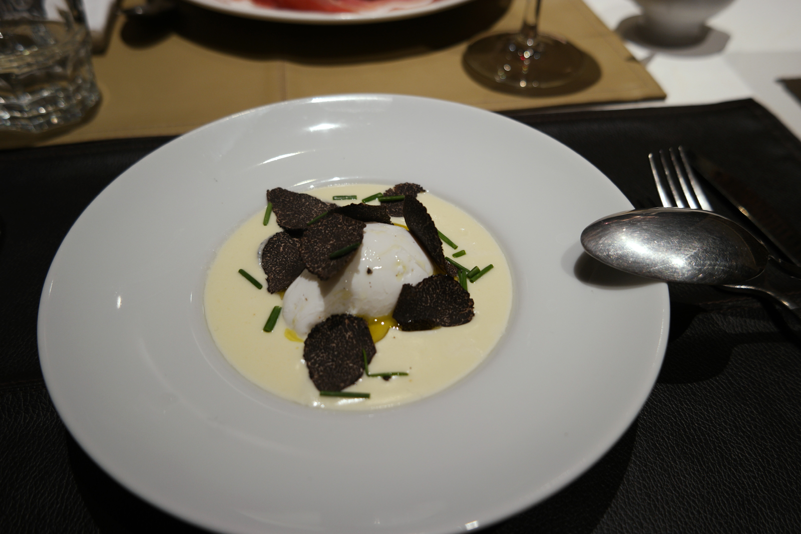 Coupées à la demande et sous nos yeux, ces charcuteries explosent en bouche. Fenouil et truffe sont subtils et bien présents, le jambon cru San Daniele : un véritable moment de plaisir qui fait écho au jambon de Parme dégusté il y a quelques mois. Mais en plus fin encore.