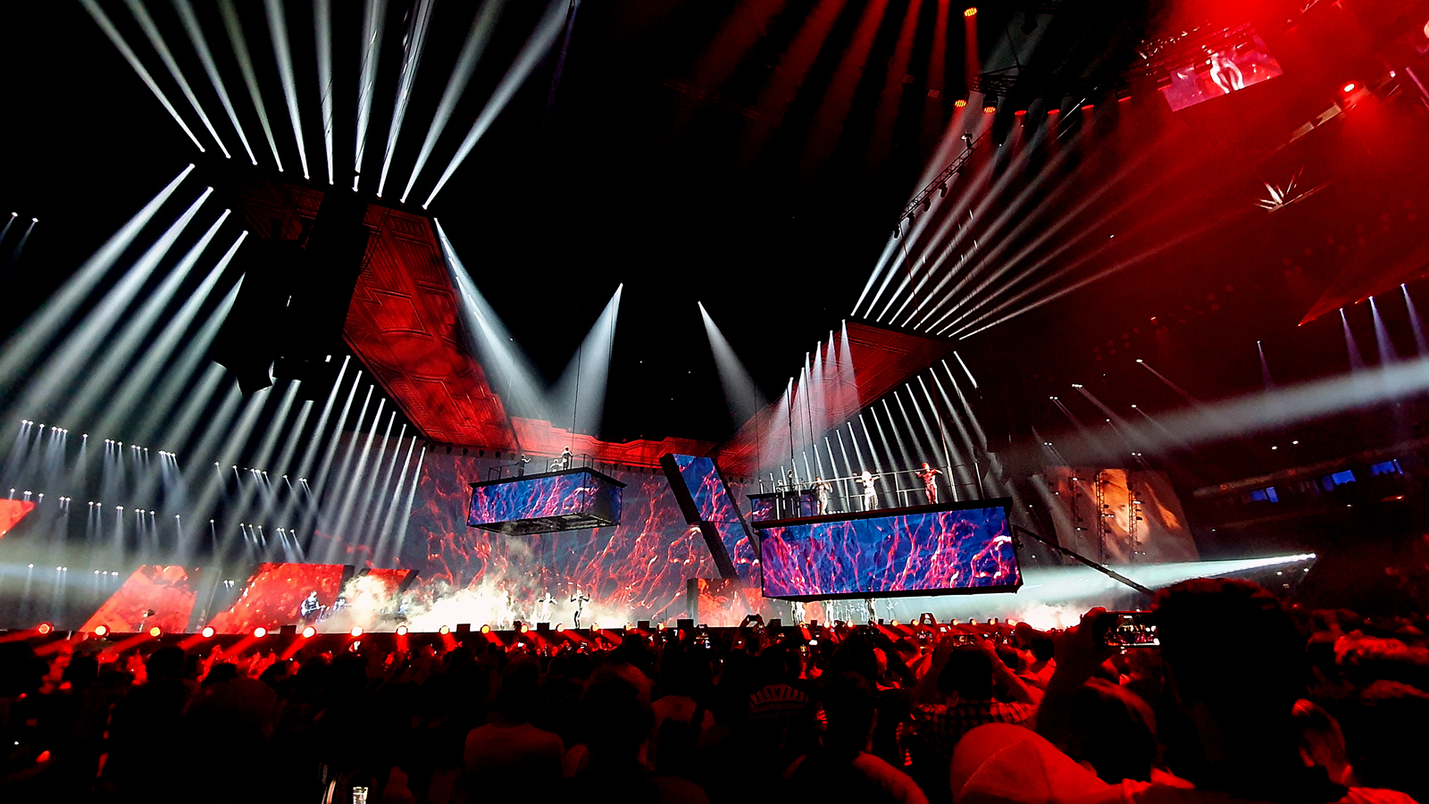 Emmanuel : “La U Arena a été pensée et conçue pour recevoir des grands shows. Il y a des lumières qui inondent la scène dans tous les recoins de la salle. J’ai lu des retours négatifs sur le son, mais dans la fosse, il était parfait, même pas besoin de bouchons d’oreilles. Vraiment appréciable. Peut-être que ce n’était pas le cas en tribunes… Côté décor, la prod a mis le paquet. Sur scène, les écrans sont utilisés de façon intelligente et se combinent les uns aux autres pour former de nouveaux décors. De gros frissons sur Désenchantée avec le survol du public.”