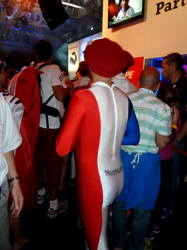 Pour finir, je ne peux m’empêcher de partager avec vous cette vue sur combinaison moulante tricolore.