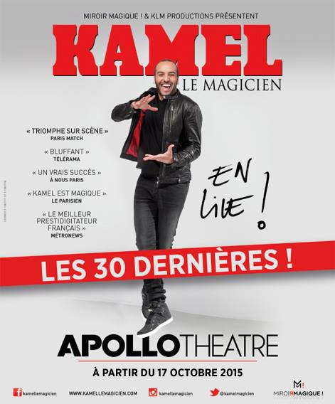 Kamel le Magicien en live les 30 dernières à l Apollo Théâtre paris dès le 17 octobre 2015 affiche spectacle humour magie mentaliste illusionniste canal plus