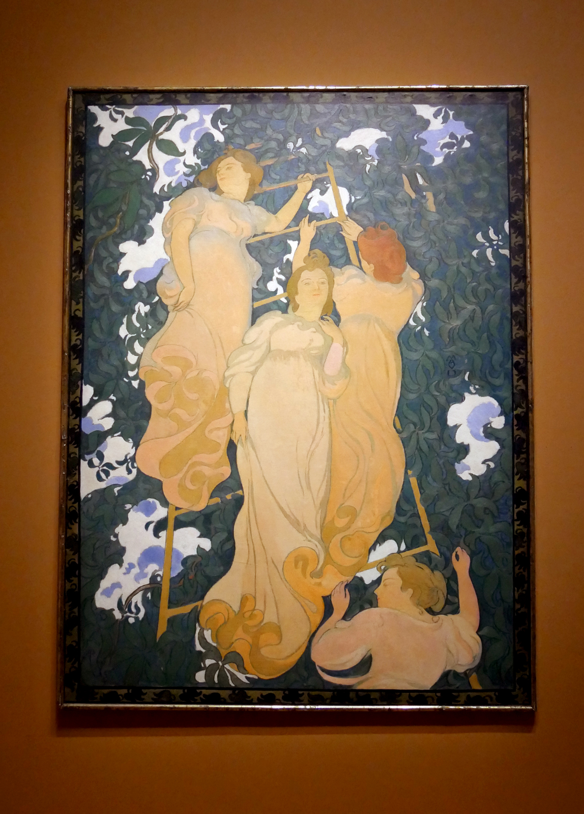 Cette toile de Maurice Denis est baptisée Arabesque poétique et aussi L’échelle dans le feuillage.