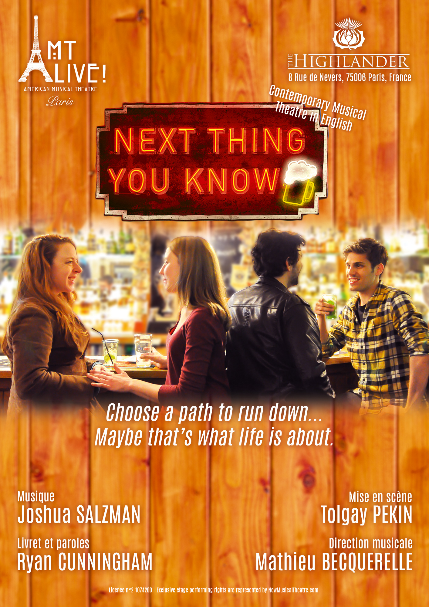 La troupe franco-américaine American Musical Theatre Live! Paris (AMT) réjouit les expats, anglophiles et autres spectateurs en manque de dépaysement et d’histoire d’amour avec Next thing you know. Bonne nouvelle : reprise en mars à Paris et avril à Poissy !!