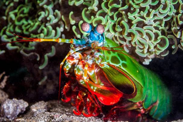 J’avoue que je suis tombé raide amoureux d’une squille multicolore. Elle pourrait être un sujet de film à elle seule tant elle est belle que captivante. Elle a de nombreux atouts dont l’incroyable capacité à distinguer dix fois plus de nuances colorées que nous pauvres humains (jusque dans l’ultra-violet).