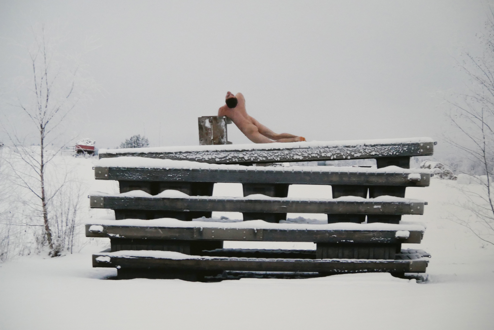 Dans sa série photo Adaptation, elle entraine un danseur contemporain dans ses paysages finlandais et des situations cocasses. Le résultat est tout aussi joyeux que refroidissant quand on ose – même une fraction de seconde – se maitre à la place du modèle.
