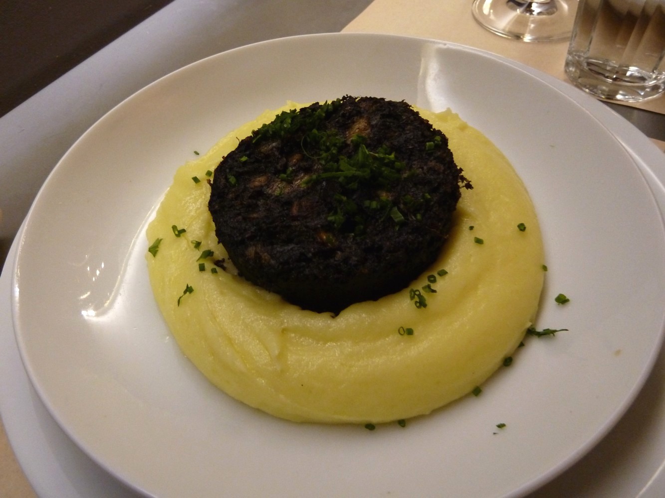 Côté plat. Les présentations sont simples mais goûteuses à souhait. Le boudin noir sur sa purée moelleuse tout en délicatesse, tient le palais en haleine d’un bout à l’autre de la dégustation.