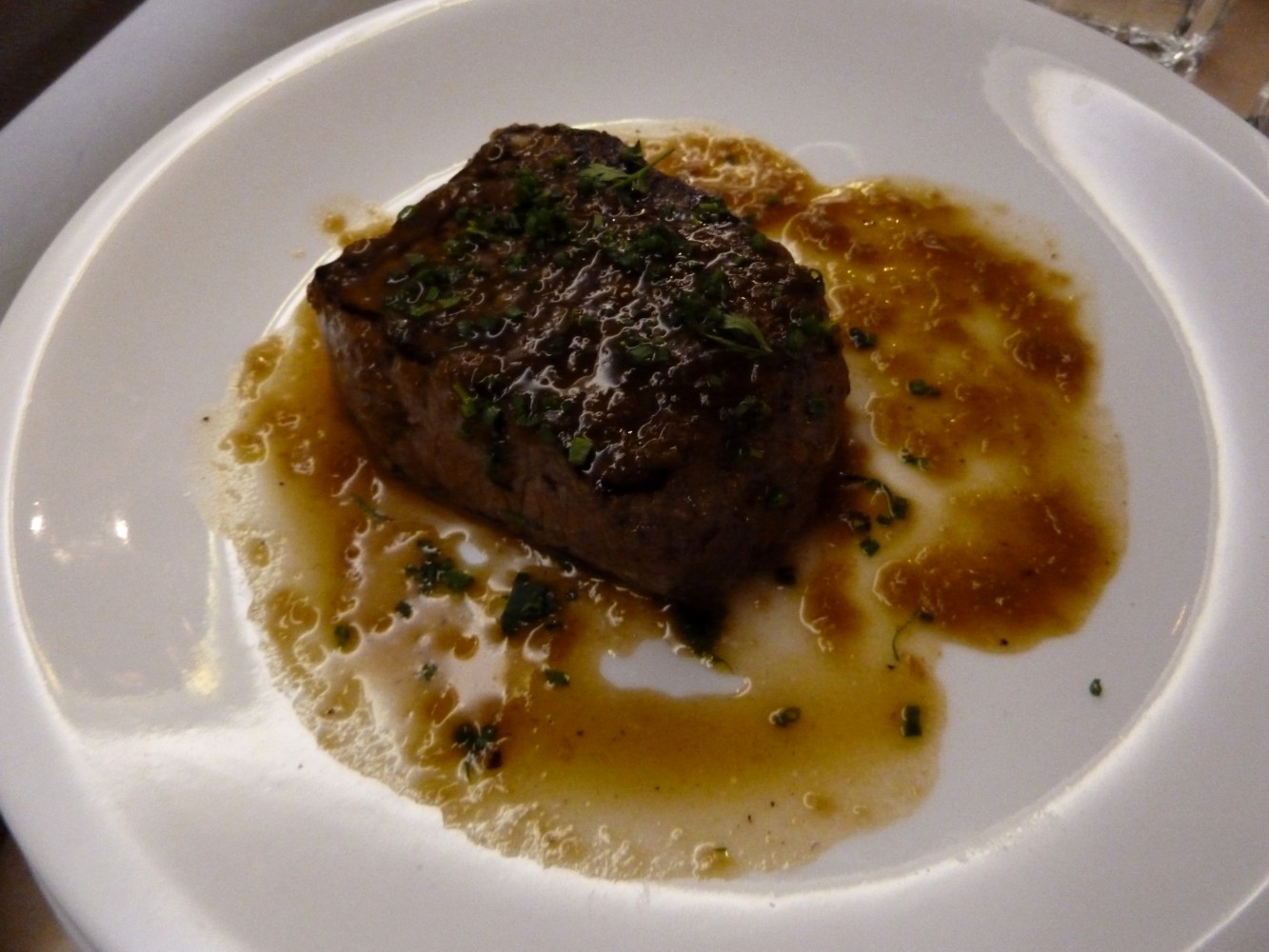 Enfin la pièce de boeuf français sauce Bercy accompagné de ses frites impose sa force. Goût appuyé et viande en tendresse.